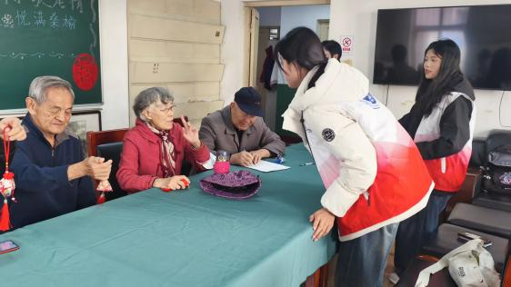 龄伴暖意,香囊递温情。10月29日,学院组织志愿者队伍到学校退休职工中心开展慰问退休教职工活动。志愿者们围坐在老职工身边,聆听他们分享往事与人生经验,陪伴老职工进行象棋对弈、乒乓球比赛等活动,在轻松融洽的氛围中交流互动、增进情谊。同时,同学们将亲手制作的香囊赠送给学校老职工,细致讲解香囊的寓意,用传统形式传递温暖与关怀,不仅丰富了退休职工的精神文化生活,而且弘扬了敬老爱老的传统美德。