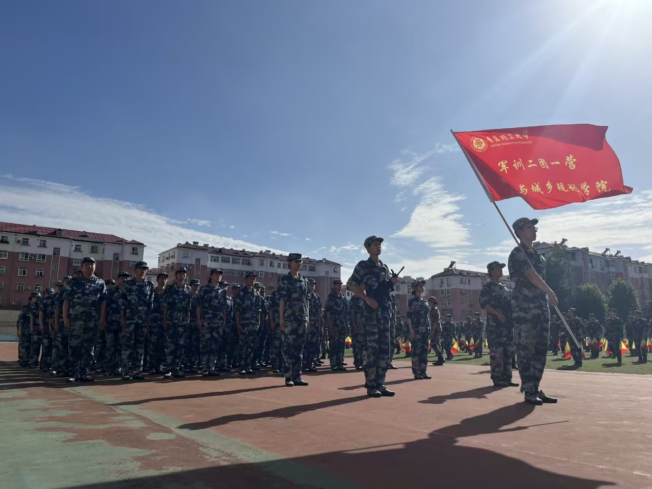 为引导新生在铭记历史中厚植家国情怀、在感悟国防发展中明晰职业方向,9月3日,建筑与城乡规划学院于军训训练场开展“九三阅兵观后征兵宣讲”活动。本次活动面向学院全体2025级参训新生,以“观看阅兵直播+现场宣讲”为载体,将国防教育融入军训实践,助力新生将爱国热情转化为报国行动。
