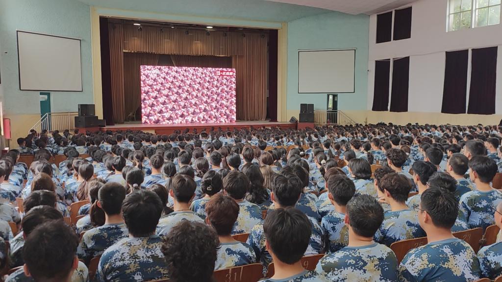 9月3日,全体新生整齐列队于市北校区礼堂,共同观看“纪念中国人民抗日战争暨世界反法西斯战争胜利80周年阅兵式”直播。当徒步方队迈着铿锵步伐踏过长安街,装备方队载着国之重器缓缓驶过,空中梯队拖着彩烟划破长空,训练场上不时响起阵阵掌声。直播中,先进精良的武器装备、整齐划一的队列动作,生动展现了我国强大的国防力量与军队现代化建设的卓越成就,也让新生们深刻体会到“落后就要挨打”的历史教训与“强国必先强军”的时代使命。不少新生表示,看到阅兵中军人坚毅的眼神与挺拔的身姿,内心涌起强烈的民族自豪感与报国渴望,“穿上军装、守护家国”的种子悄然萌芽。