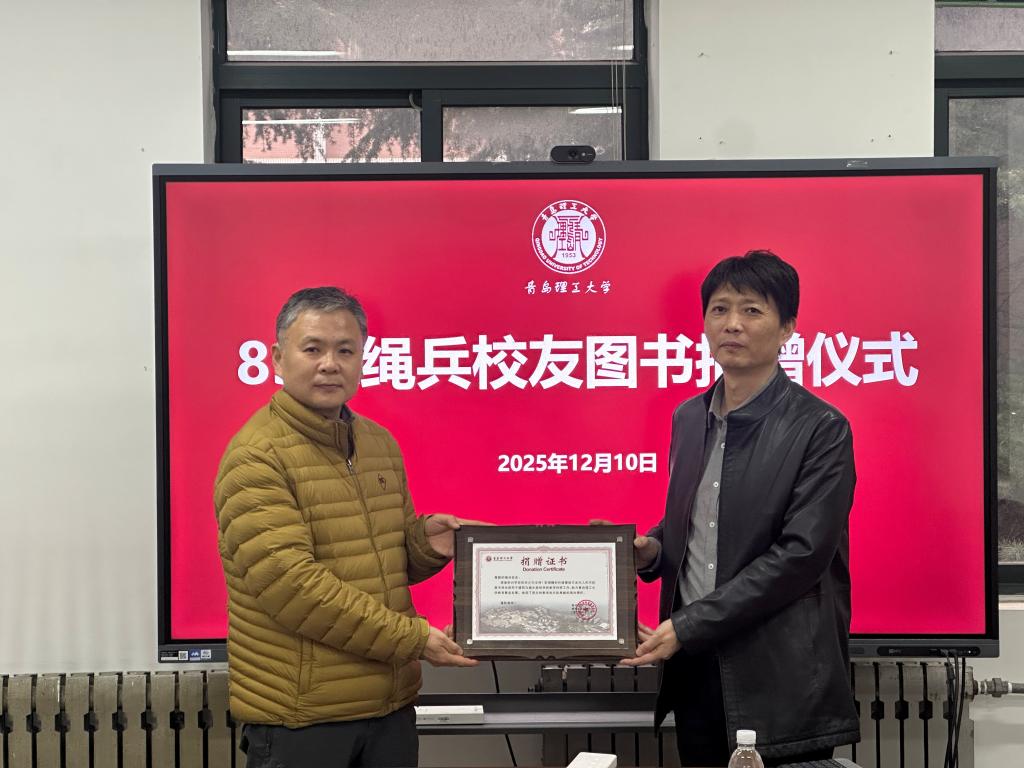 绳兵校友是原青岛建筑工程学院(现青岛理工大学)建工系工民建专业1989级学生,现为青岛理想城市建筑设计有限公司执行董事,此次重返母校,共向建筑与城乡规划学院捐赠建筑类图书1000余册,总价值约10余万元。