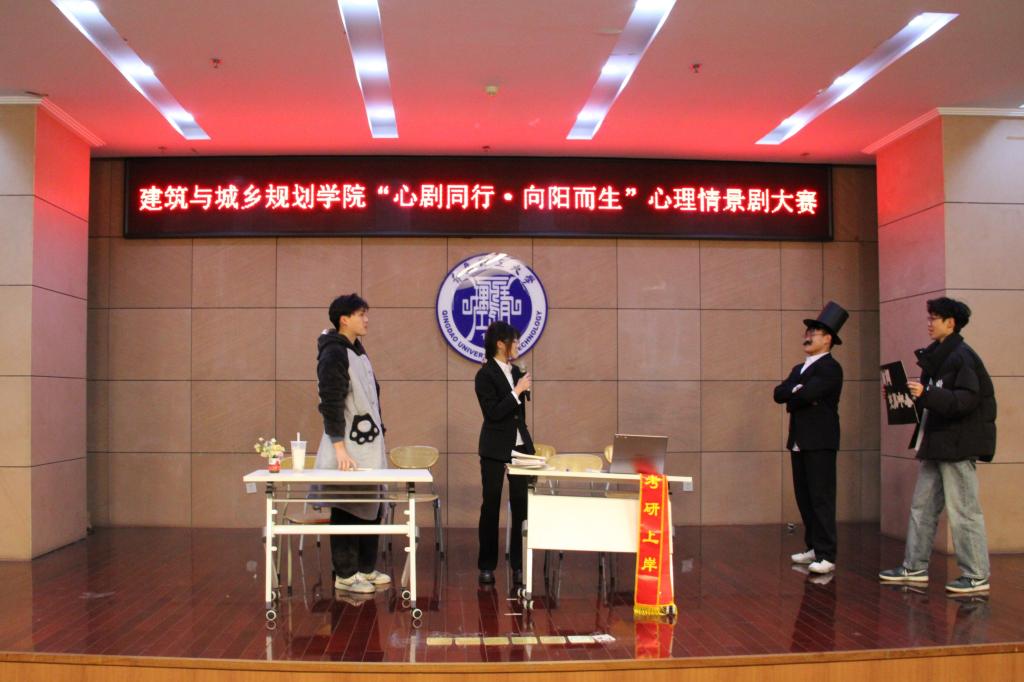 为提升大学生心理健康素养,丰富学生课余生活。12月12日,建筑与城乡规划学院举办“心剧同行・向阳而生”心理情景剧大赛。学院辅导员王文卿、于文盛,心理协会学生代表担任本次比赛的评委,学院200余名学生观众到场观看。
