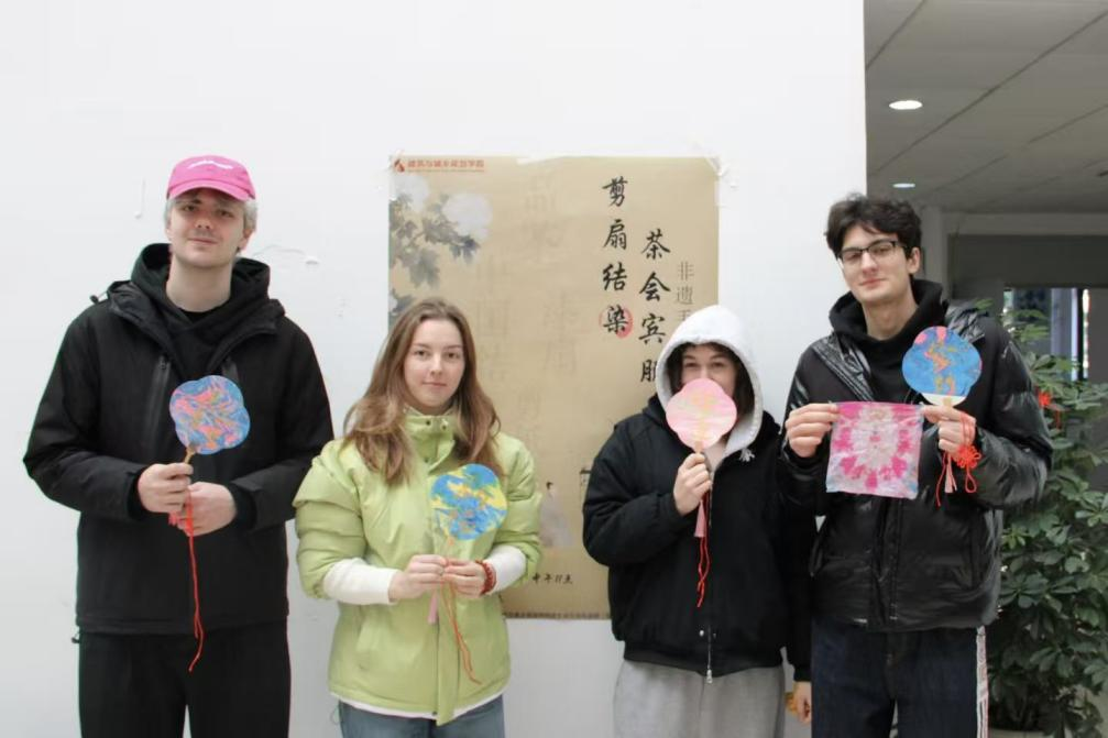 构筑“以文会友”桥梁,推动中华文化传播。学院积极挖掘中华优秀传统文化中的育人内涵,将二十四节气文化与非遗技艺体验相结合,创新打造“剪扇结染,茶会宾朋”跨文化主题活动。通过组织中外学生共同参与剪纸、漆扇绘制、扎染等传统手工艺实践,让中外学子共同沉浸于中国传统非遗技艺的魅力。来自白俄罗斯的同学表示:“通过此次交流,我深切感受到了中华文化的深厚底蕴与独特美学魅力,希望未来还能有机会来到中国,体验更多的中华传统文化。”