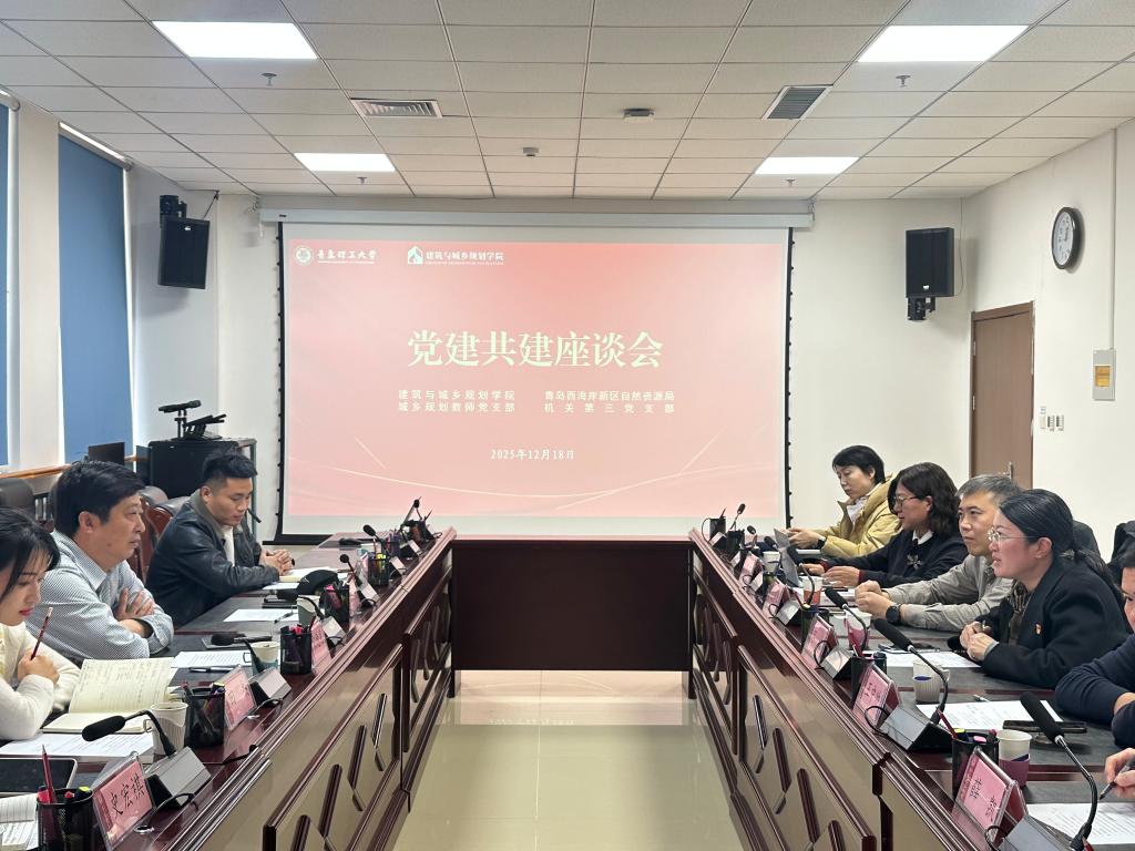 为深入贯彻落实新时代党的建设总要求,推动党建与业务深度融合,12月18日,建筑与城乡规划学院城乡规划教师党支部与青岛西海岸新区自然资源局机关第三党支部联合开展“党建共建聚合力,规划赋能促发展”主题共建活动。双方围绕党建融合、专业协同、服务地方等议题展开深入交流,增进务实合作。
