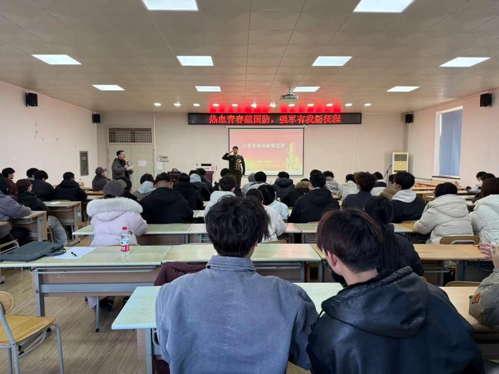 为精准响应国家征兵工作号召,持续深化国防教育普及成效,进一步点燃青年学子携笔从戎的青春热情,1月8日,建筑与城乡规划学院在市北校区组织开展征兵宣讲系列活动。本次活动特邀退役军人,戎耀志愿服务中心主任李积伟、讲师刘建新进行宣讲,共吸引市北校区百余名同学参加。
