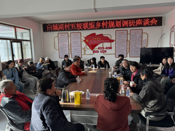 今年联合设计以“乡村的价值与责任”为主题,强调激发乡村发展的主体意识和能力,从就村论村的微观层次转向融入城乡网络的宏观视域;从被动建设转向主动链接;从帮扶维稳转向功能担当,真正实现建设宜居宜业和美乡村的目标。3月3日下午至5日,我校师生分为两个小组,由两位老师分别带领对靖边县寨山村、白城则村进行座谈与调研,经过实地调研,师生掌握了两村现状基本情况的第一手资料,通过访谈了解当地居民需求,为后续开展规划设计奠定基础。同学们在老师的带领下对调研成果进行整理归纳及补充,形成了对各毕业设计选址地点的初步策划。在两天的讨论研究后,同学们依次进行开题答辩汇报,当地领导与各校指导老师针对各会场每组的汇报情况给出了精彩的点评和现场指导。