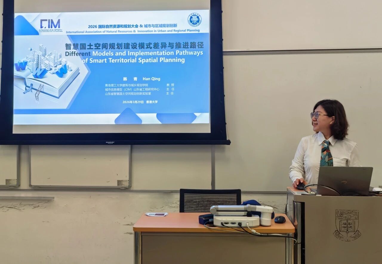 城市信息模型(CIM)山东省工程研究中心主任、我校建筑与城乡规划学院韩青教授应邀出席会议,并作题为《智慧国土空间规划的模式差异与推进路径》的学术报告。报告立足我国城市发展从增量扩张转向“存量提质增效”的新阶段,比较了国内四大先发地区的智慧规划建设模式——广东突出全省统筹、山东强调全生命周期管理、北京聚焦基层延伸、上海注重闭环管理与“一网统管”,并针对数据质量、技术能力、部门协同等共性瓶颈,提出基于发展阶段、资源禀赋和层级定位的差异化实施路径。报告前瞻性提出从CIM(城市信息模型)向TIM(国土空间信息模型)演进的创新理念,指出TIM旨在构建全域覆盖、三维立体的国土空间数字镜像,以支撑全要素数字管理,系统展现了智慧化手段对规划编制、实施及管理的重构。