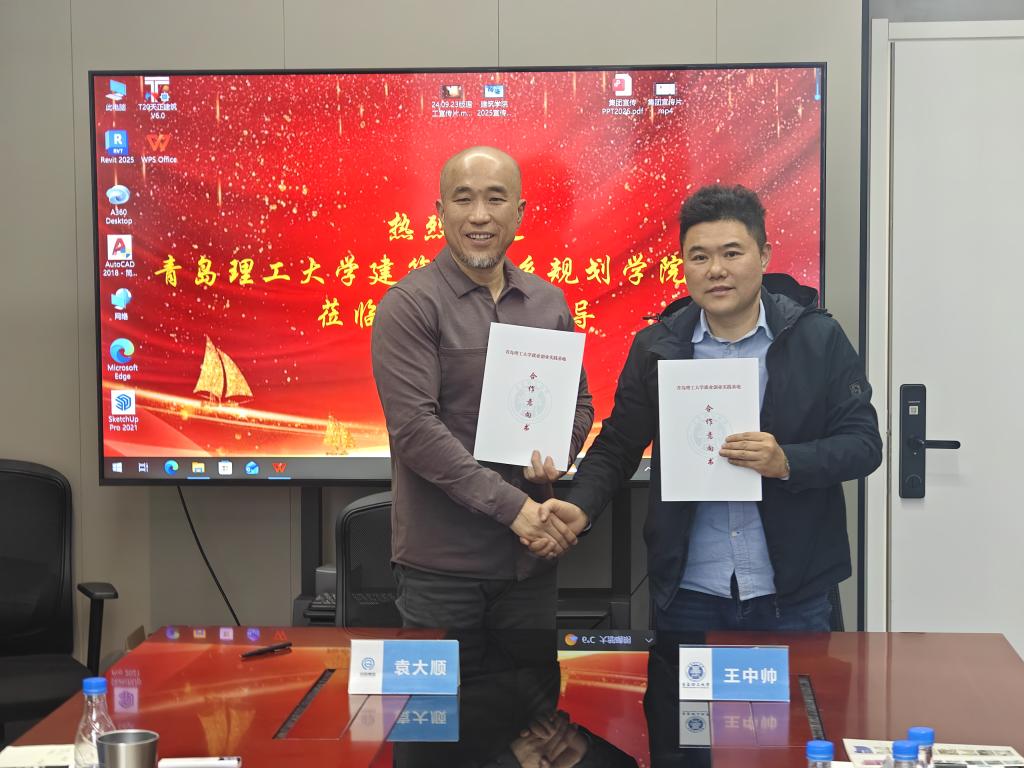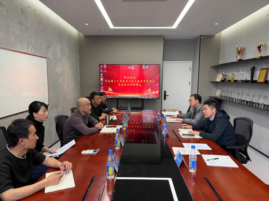 同圆设计集团股份有限公司副总经理袁大顺、青岛分公司副总经理夏纪涛、人事部副部长韩艳鸽对王中帅一行到访表示热烈欢迎。袁大顺系统介绍了公司的发展历程、核心业务领域及未来战略规划。他指出,作为国内领先的综合性设计集团,长期深耕建筑设计、城乡规划、市政工程、景观园林等核心领域,深度参与青岛及胶东半岛城市更新、新区建设、重点公建配套等重大项目,在数字化设计、绿色低碳建筑、智慧城乡规划等前沿赛道持续发力。伴随行业转型升级与区域建设提速,集团对兼具扎实专业功底、工程实践能力、数字化应用技能与创新思维的高素质规划设计人才需求持续旺盛,表示集团高度重视与高校的深度合作,愿与学院搭建常态化、长效化合作机制,在优质人才定向输送、研究生联合培养、产学研项目协同攻关、前沿技术成果转化等方面创新合作模式,整合校企优质资源、发挥双方优势特长,携手服务区域城乡建设与建筑设计行业高质量发展。