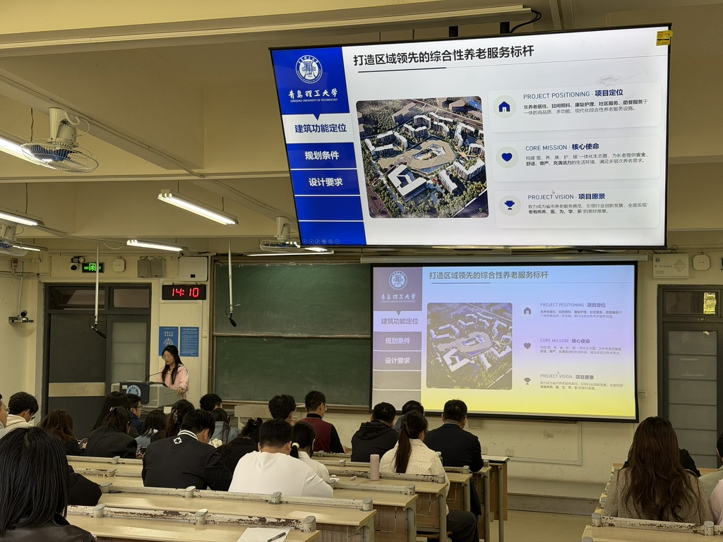 考核现场学术氛围浓厚,各联合毕设学生团队依次登台,系统汇报了前期实地调研成果、方案深化设计、技术路线优化及各专业间协同配合情况,重点展示了空间布局、结构体系优化、绿色低碳技术、智能建造理念在设计全过程的贯穿应用,以及文化IP打造、环境景观优化等兼具人文温度与落地可行性的系统性方案。评审专家在认真听取汇报、审阅图纸及调研报告等中期成果后,从多个维度严格把关并进行专业点评,既充分肯定了同学们在多学科交流碰撞中付出的努力和取得的阶段性成果,也针对潜在问题提出了建设性意见,为各团队下半阶段工作理清了思路。