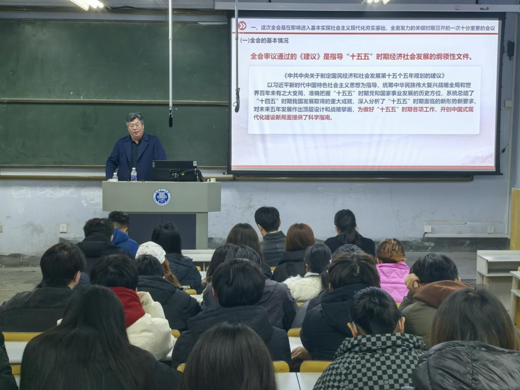 苗吉军以“十五五”时期发展锚定的战略方向与2035年远景目标为切入口,结合城乡规划专业特色,为师生开展了深入宣讲。他指出,党的二十届四中全会是在迈上全面建设社会主义现代化国家新征程、向第二个百年奋斗目标进军的关键时刻召开的一次重要会议。全会深刻总结“十四五”发展成就,科学研判“十五五”时期的历史方位,为未来五年发展擘画了宏伟蓝图。他强调,城乡规划专业在服务国家战略、推动空间治理现代化进程中肩负着重要使命,勉励同学们要聚焦城市更新、智慧治理等国家重大需求,筑牢专业根基,将个人学习成长融入城乡高质量发展大局,在优化国土空间格局、改善人居环境、促进可持续发展的时代征程中践行青春理想、担当历史使命。