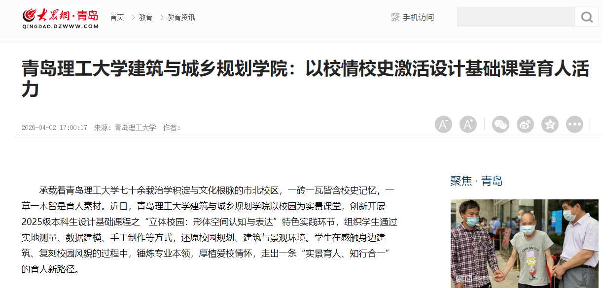 青岛理工大学建筑与城乡规划学院将以此次课程实践为契机,打造“课程思政+专业实践”的育人模式,以更多特色课程为载体,持续强化学风建设,厚植爱校荣校情怀,引导学生在专业成长中坚定理想信念,在热爱母校中砥砺奋进,成长为兼具扎实专业素养、优良治学作风与深厚家国情怀的新时代建筑人才。